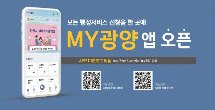 한편, ‘MY광양’ 앱은 구글 플레이스토어와 애플 앱스토어에서 ‘마이광양’ 또는 ‘MY광양’으로 검색해 무료로 다운로드할 수 있으며, 이용 관련 문의는 광양시청 감동시대추진단으로 하면 된다.