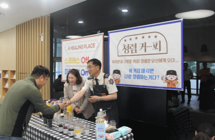 최진석 소방서장은 일일 바리스타가 되어 직원들에게 직접 다양한 청렴메시지가 담긴 커피와 간식을 나눠주며 격의 없는 대화를 통해 격려와 청렴 의미를 함께 공유했다.
