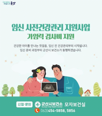 군산시 보건소 관계자는 “임신 전 건강검진은 건강한 임신과 출산을 위한 중요한 첫걸음.”이라며, “많은 시민들이 참여하여 건강한 미래를 준비하길 바란다.”라고 밝혔다.