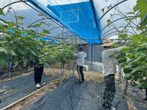이날 직원들은 농촌 인구감소에 따른 일손 부족 등으로 고충을 겪고 있는 농가의 어려움을 덜어주고자 포도 곁순 제거 및 주변 환경정비 활동을 펼치며 구슬땀을 흘렸다.