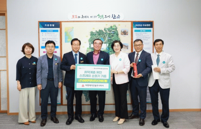 고태유 티앤제이건설(주) 대표는 “최근 대형 산불 사태와 함께 곳곳에서 화재 소식이 많이 들리는데 화재에 취약한 주민들에게 스프레이형 소화기를 나눠줌으로써 안전 사각지대 해소에 도움이 되길 바란다”고 말했다.