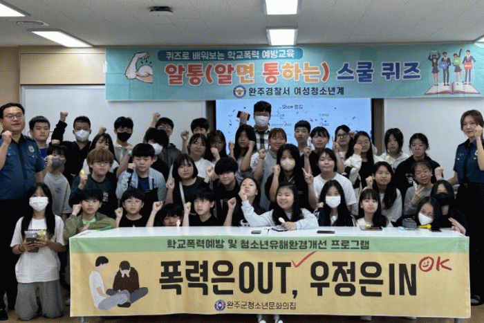 이번 프로그램은 완주군청소년문화의집이 매년 관내 5개 학교를 선정해 운영하는 순회형 예방교육의 일환으로, 학교폭력에 대한 올바른 인식과 자발적 예방 문화를 조성하고자 기획됐다.
