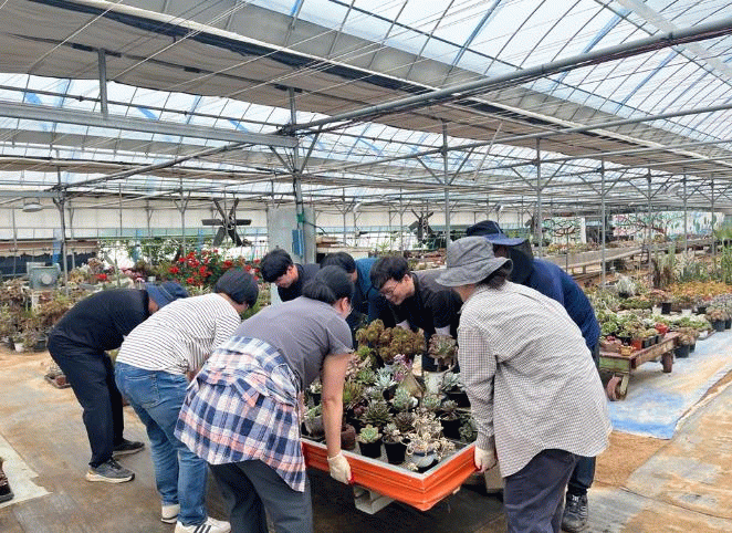 이날 회계과 11명의 직원은 농장의 제초 매트 깔기, 풀 뽑기 등 다육식물 농장 환경을 정리했으며, 농촌인구의 감소와 고령화, 일손 부족으로 인해 어려움을 겪고 있는 농가를 돕기 위해 구슬땀을 흘렸다.