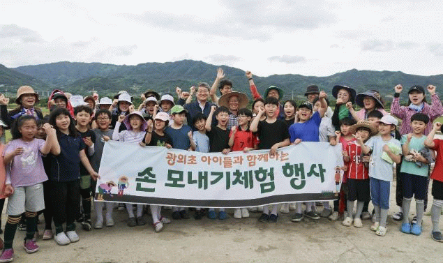 이번 행사는 광의초등학교와 영농조합법인 신농의 협력으로 진행됐으며, 아이들은 직접 맨발로 논에 들어가 전통 농법을 체험하는 시간을 가졌다.