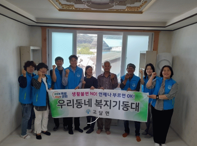고달면 복지기동대는 봉사 정신이 투철한 마을주민 8명으로 이뤄져 있으며, 도움이 필요한 이웃을 위해 봉사활동을 하고 있다.