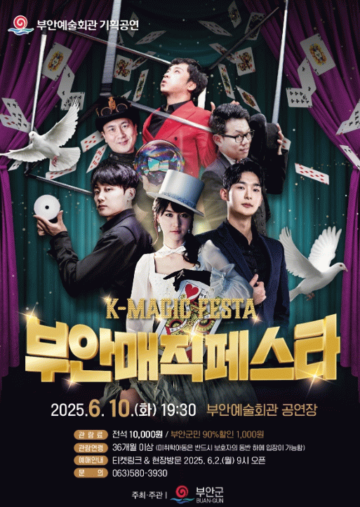 부안매직페스타는 부안예술회관 기획 공연으로 국내 최정상급 마술사들이 출연해 다채로운 퍼포먼스를 선보이는 대형 마술 콘서트다.