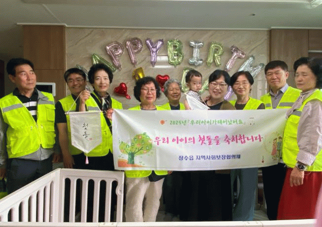 ‘첫 돌 축하사업’은 2024년부터 시행된 장수읍 지역사회보장협의체만의 특화사업으로 첫 생일을 맞이한 아동이 있는 가정을 직접 방문하거나 초청해 축하하는 지역 맞춤형 복지 사업이다.