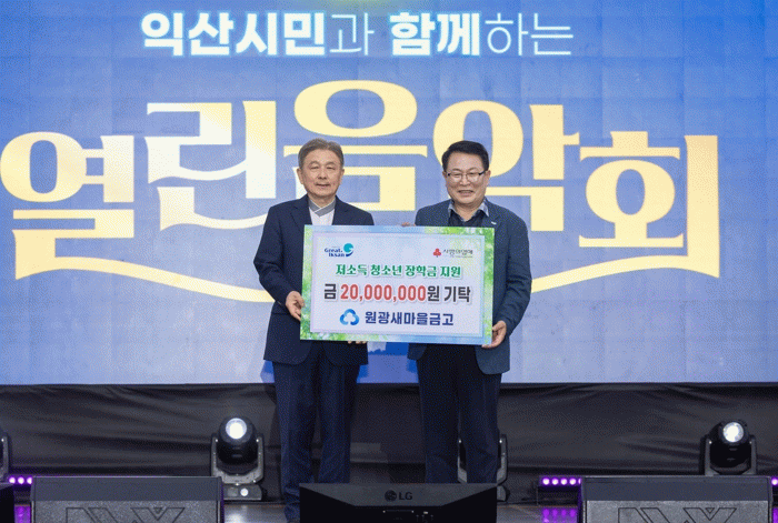 이번 기탁은 원광새마을금고가 24일 개최하는 '원광새마을금고 본점 이전 기념 익산시민이 함께하는 열린음악회'에서 이뤄진다.
