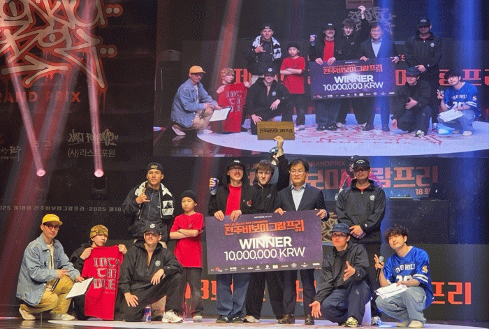 전주 비보이그랑프리는 대규모 크루 배틀이 펼쳐지는 대한민국 최고의 비보이 대회로, 올해 대회에는 국내 비보이뿐만 아니라 유럽과 아시아 비보이들이 대거 참여해 우승을 놓고 격돌했다.