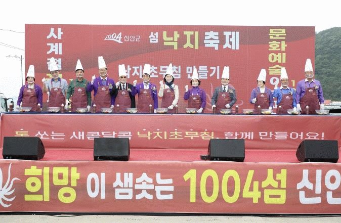 풍물, 난타 공연을 시작으로 개최된 이번 낙지 축제는 천사대교를 배경으로 진행됐으며 축제 기간 체험, 수산물 직거래 등 다양한 행사가 함께 마련됐다.