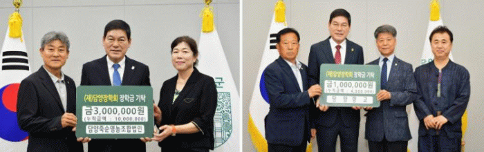 2018년부터 지금까지 총 1,000만 원의 장학금을 기탁하며 지역 인재 양성에 꾸준히 기여해왔다.
