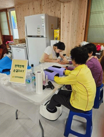 반짝반짝 손길day는 손마사지기, 발마사지기를 활용해 손·발마사지를 진행하고 전동 손톱깎이를 이용하여 궂은 농사일로 손톱을 관리하기 어려운 어르신들의 손톱을 깎아준 뒤, 형형색색의 매니큐어를 발라주는 사업이다.