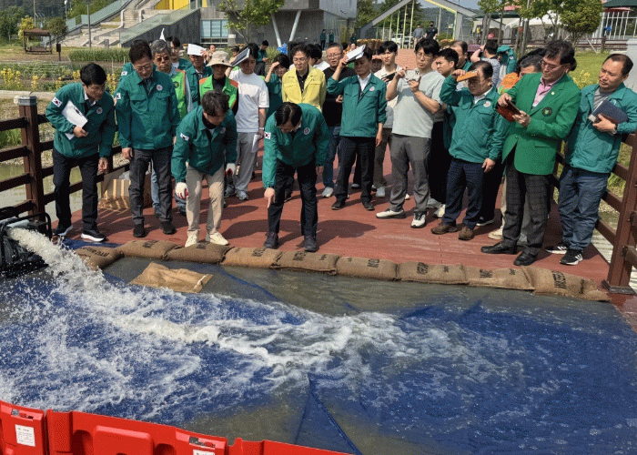 여름철 재난발생 시 필요한 장비와 자원을 실제 동원해 자원의 활용도를 직접 점검했다. ▲양수기 가동 ▲이동식 차수판 및 흡수성 마대 설치 ▲이재민 구호용 쉘터 구성 등 수방자원 현장 배치와 장비 작동 훈련을 진행했다.