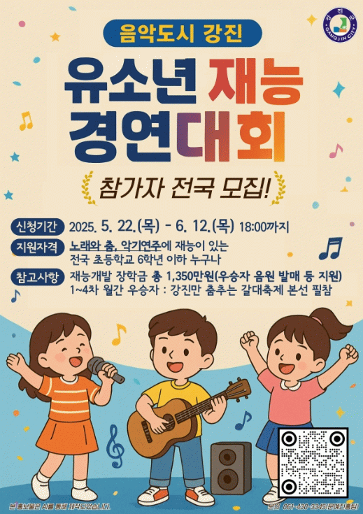 예선 참가 신청은 오는 6월 12일까지 온라인 네이버 폼으로 진행되며 관련 내용은 강진군 누리집 고시공고를 통해 자세히 확인할 수 있다.