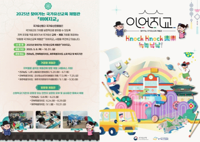 ‘이어지교’는 2020년부터 국가유산청과 국가유산진흥원이 추진해 온 대표 교육·체험 프로그램으로, 지리·경제·신체적 제약으로 인해 국가유산을 접할 기회가 부족한 사회적 약자와 지역민을 위해 마련됐다.