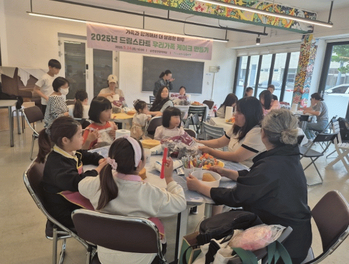 장안창작마당에서 진행한 이번 프로그램은 전문 영양사를 초빙하여 기초 이론을 듣고, 이어서 아동들이 부모님과 함께 자신의 가족을 떠올리며 다양한 모양의 케이크를 직접 만들고 먹어보는 시간을 가졌다.