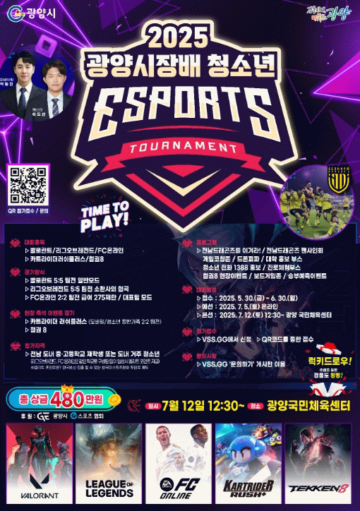 오는 7월 청소년들의 열정과 실력을 마음껏 펼칠 수 있는 무대, ‘2025 광양시장배 청소년 e스포츠 대회’가 열린다.
