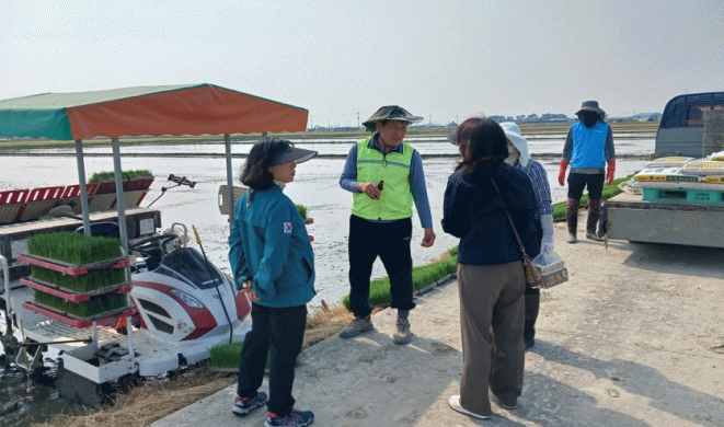 이날 김영자 동진면장은 관내 모심기 현장에서 직접 모심기 작업에 동참했으며 이모작 작물인 보리, 밀의 생육 관리에 집중하고 있는 농민들의 애로사항을 청취하는 소통의 시간을 가졌다.