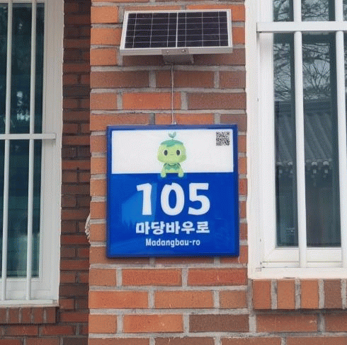 건물번호판에는 QR코드 기능이 추가되어, 스마트폰으로 스캔하면 현재 위치와 도로명주소를 음성과 함께 안내받을 수 있다.
