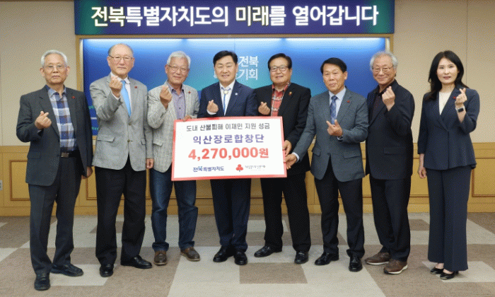 이에 대해 김관영 도지사는 “어려운 시기에 이웃을 먼저 생각하며 실천적 나눔을 보여준 익산장로합창단에 깊이 감사드린다”며, “이번 성금이 피해 주민들에게 실질적인 힘이 되고, 지역사회 회복의 마중물이 되길 바란다”고 말했다.