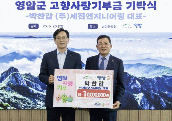 김 대표는 “영암군에 대한 각별한 애정을 담아 기부를 결심했다. 지역 발전과 지역민의 좋은 삶을 위해 관심과 응원을 지속하겠다”고 전했다.