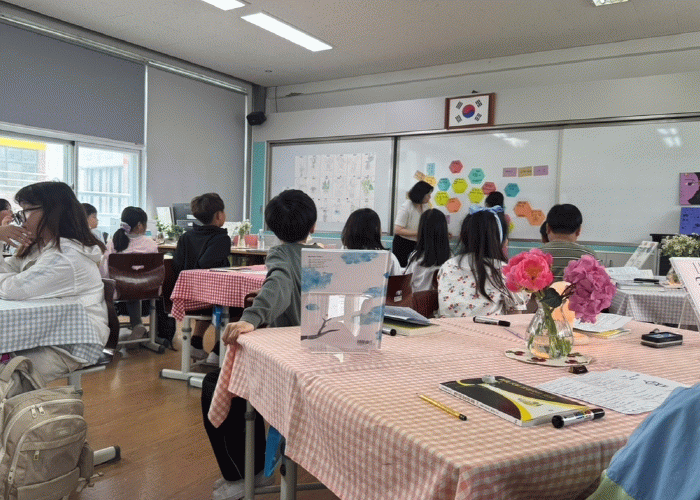 이번 수업은 ‘책 시식회’를 통해 학생들이 직접 고른 책을 다양한 방식으로 맛보듯 탐색하며 기대되는 책을 선정하는 활동으로 구성됐다. 교실 곳곳에 펼쳐진 학급 문고 책들을 자유롭게 돌아다니며 표지, 띠지, 작가 소개, 친구의 추천서 등을 살펴보고, 처음 몇 장을 직접 읽어보며 책과의 거리를 좁히는 시간을 가졌다. 아이들은 자신이 고른 책에 대한 첫인상을 메뉴판에 기록하고, 마지막에는 가장 기대되는 책에 투표하며 그 이유를 함께 나눴다.