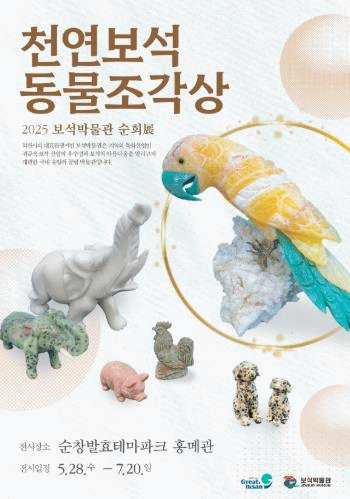 작품은 말라카이트, 재스퍼, 아벤츄린 등 다양한 천연보석으로 제작됐으며, 친숙한 동물 형태를 통해 남녀노소 누구나 흥미롭게 감상할 수 있다.