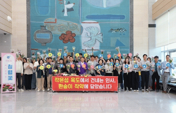 지난 25일 막을 내린 ‘2025 섬 작약꽃 축제’ 이후 묘목 보호를 위해 자른 작약꽃을 직원에게 나눠주는 이벤트로 작약꽃의 꽃말은 ‘수줍음’ 또는 ‘부끄러움’으로 청렴의 핵심 가치를 담고 있어 청렴의 가치를 되새기고 실천하자는 뜻을 담고 오늘 행사를 준비했다.