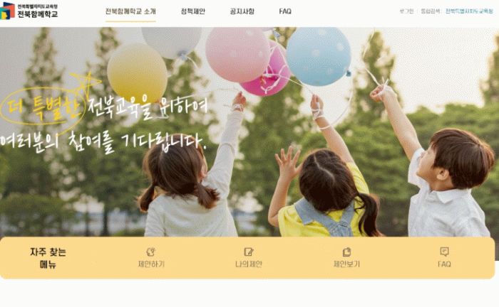 지난해 3월 개통한 ‘전북함께학교’는 학생, 학부모, 교직원 등 교육공동체는 물론 도민 누구나 교육정책에 대한 의견을 제시하고 토론할 수 있도록 마련된 온라인 정책 제안 플랫폼이다.