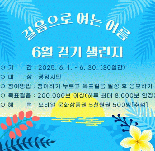 걷기 챌린지와 관련해 자세한 사항은 광양시보건소 건강증진과로 문의하면 된다.