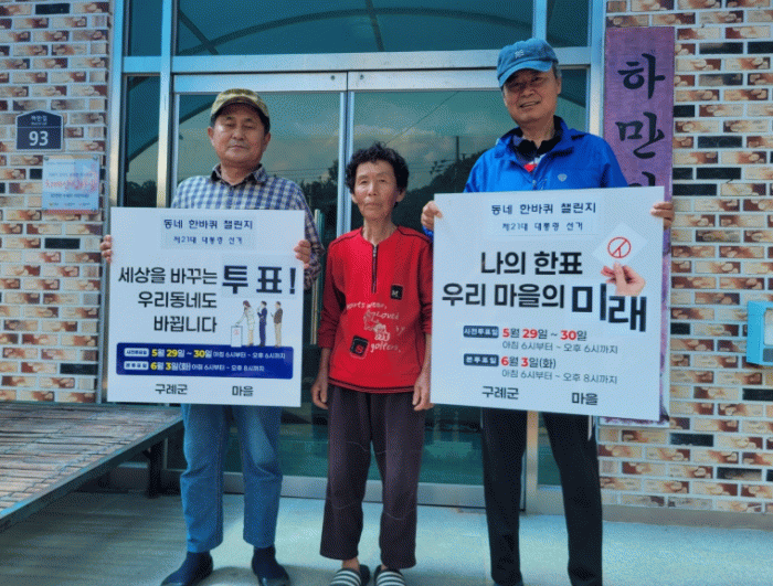이번 챌린지에 참여한 주민은 “이장님들의 자발적인 참여와 각자의 방식으로 투표를 알리는 이번 챌린지는 풀뿌리 민주주의를 실천하는 좋은 본보기”라며 “앞으로도 이런 주체적인 움직임이 지역사회 전반으로 확산되길 기대한다”고 밝혔다.