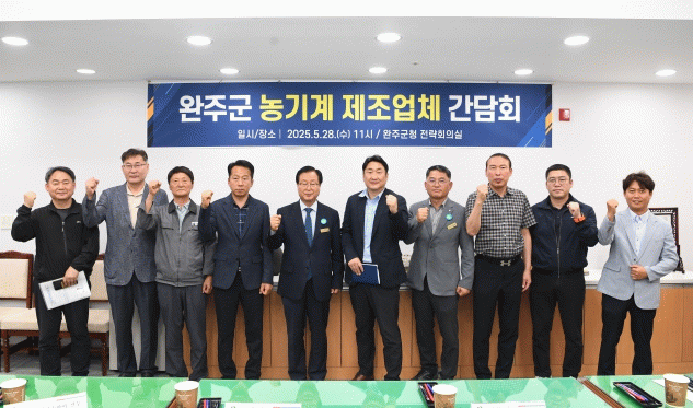 유희태 완주군수는 “농기계 산업은 지역 경제의 중요한 축인 만큼, 현장의 목소리를 바탕으로 실질적인 지원 방안을 마련해 나가겠다”며 “앞으로도 기업들이 안정적으로 성장할 수 있도록 지속적인 소통과 협력을 이어가겠다”고 밝혔다.