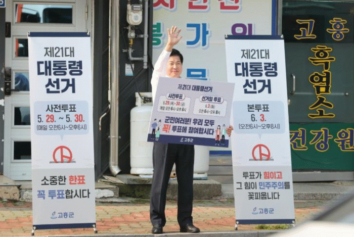 또한, 투표 참여 독려 캠페인 후 고흥읍 사전투표소를 방문해 투표소 주변을 둘러보며, 군민들이 불편 없이 투표에 참여할 수 있도록 철저한 준비를 당부하며 직원들을 격려했다.