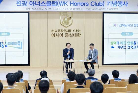 ‘원광 아너스클럽’은 학업 성취도와 잠재력을 두루 갖춘 학생들을 선발해 장학금과 맞춤형 리더십 프로그램을 제공하는 원광대학교의 인재 발굴 프로그램으로 이날 특강에는 학생과 교직원 등 120여 명이 참여했다.