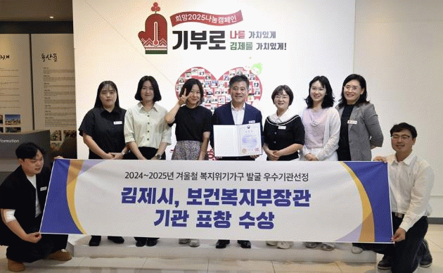 이번 표창은 겨울철 기간 (`24.11.~`25.3.)동안 취약계층 보호를 위해 전국적으로 노력한 우수 지자체를 선정했으며, 전북특별자치도에서는 김제가 유일하게 수상했다.