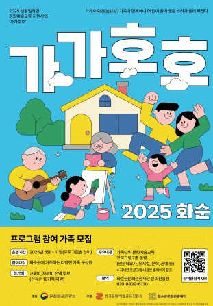 이번 ‘2025 생활밀착형 문화예술교육 지원사업 가가호호(家加好好)’ 사업은 단순한 프로그램의 수강을 넘어 문화예술교육을 통해 가족 간 이해를 높이고, 건강한 가족 여가문화를 만들기 위한 생활밀착형 문화예술교육 프로그램이다.