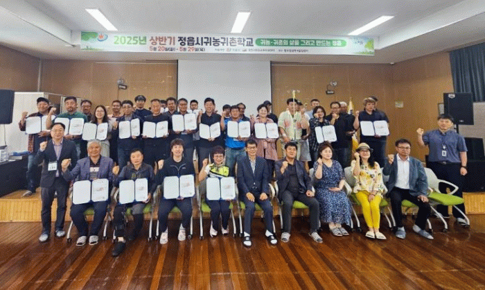 정읍시가 주최하고 (사)정읍시 귀농귀촌지원센터가 주관한 ‘2025년 상반기 귀농귀촌학교’ 수료식이 지난 29일 황토현권역어울림센터에서 성황리에 개최됐다.