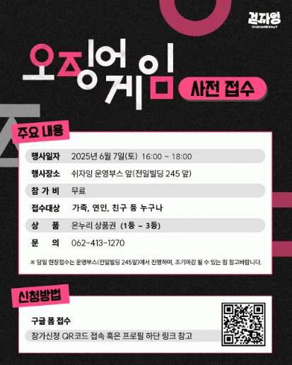 드라마 ‘오징어게임’에 등장하는 게임인 ‘무궁화 꽃이 피었습니다’, ‘둥글게 둥글게’ 등이 이날 오후 4시부터 6시까지 줄여잉 존에서 열리며 가족, 연인, 친구 등 누구나 참여할 수 있다.
