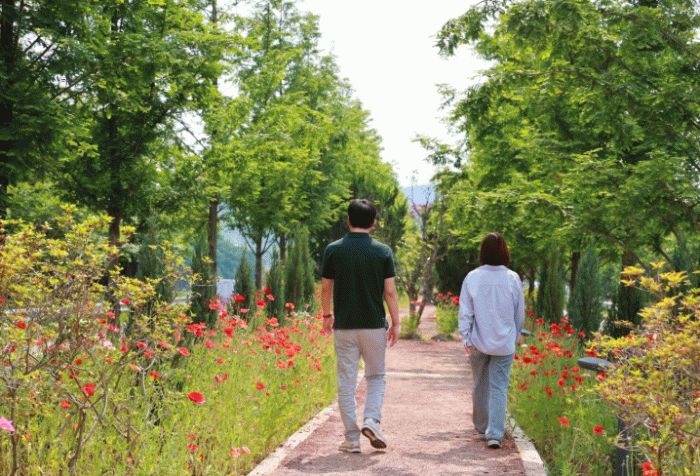 초여름을 맞아 만개한 꽃양귀비는 숲길을 따라 화사한 풍경을 연출하며 산책로를 찾는 이들에게 힐링과 감동을 선사하고 있다.