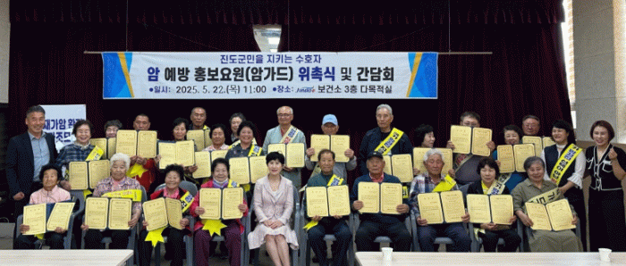 진도군 보건소 관계자는 “암은 지속적인 운동과 건강한 생활 수칙을 지킴으로써 예방이 가능한 질환이며, 홍보요원들과 함께 지역 주민들의 건강을 위해 최선을 다하겠다”라고 말했다.