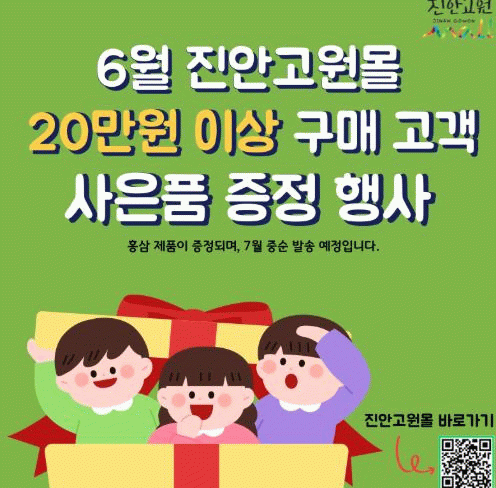 사은품은 (사)진안군홍삼한방클러스터사업단의 홍삼제품이며, 7월 중순에 대상 고객에게 연락 후 발송할 예정이다.