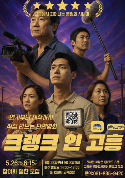 ‘크랭크 인 고흥’은 ‘영화 제작의 시작’을 뜻하는 ‘크랭크 인(Crank In)’과 ‘고흥’을 결합한 명칭으로, 고흥군 주민이 주체가 되어 지역의 자연과 이야기를 영상으로 풀어내는 참여형 문화 프로젝트다.