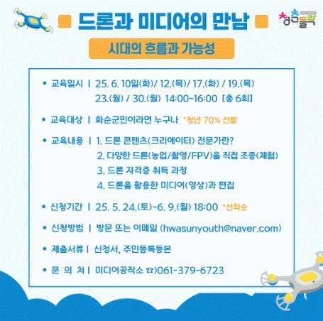 조미화 인구청년정책과장은 “드론을 활용한 크리에이터 양성 교육은 청년들이 실무 경험을 쌓고, 창의적인 콘텐츠를 실현하는 소중한 기회가 되길 바란다”라고 전했다.