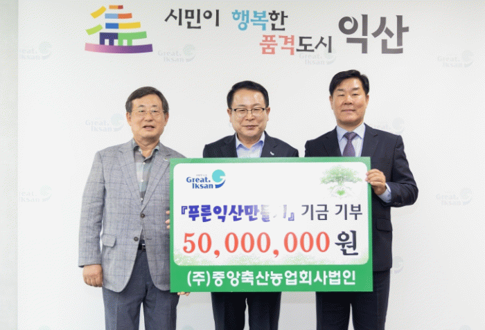 이날 전달된 성금은 ㈔푸른익산가꾸기 운동본부에 기탁된 후, 녹색정원도시 조성을 위한 나무심기에 활용될 예정이다.