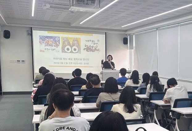 김 평론가는 이날 강연을 통해 △철학의 세 영역인 존재론, 인식론, 윤리이론 이야기 △칼데콧 아너상 ‘브렌덴 웬젤’ 작가 그림책 등을 통해 세상을 바라보는 놀라운 시선과 관점 등을 시민들에게 전달했다.