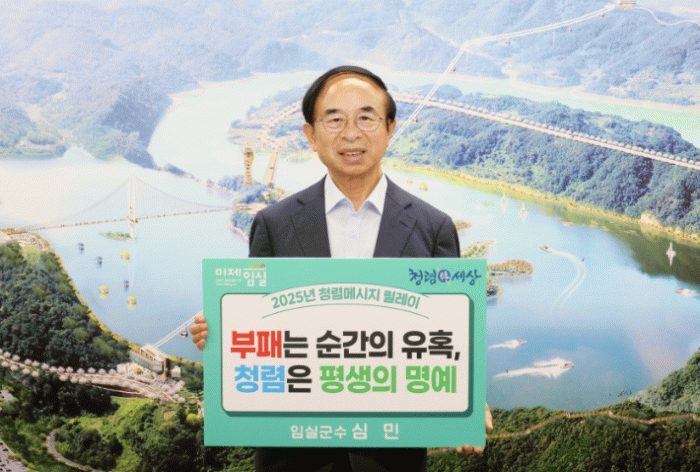 릴레이는 6월 2일 심 민 군수를 시작으로 부군수, 각 국장 등 고위공직자 6명이 순차적으로 참여하여, 전 직원에게 청렴 의지를 담은 메시지를 전달할 예정이다.
