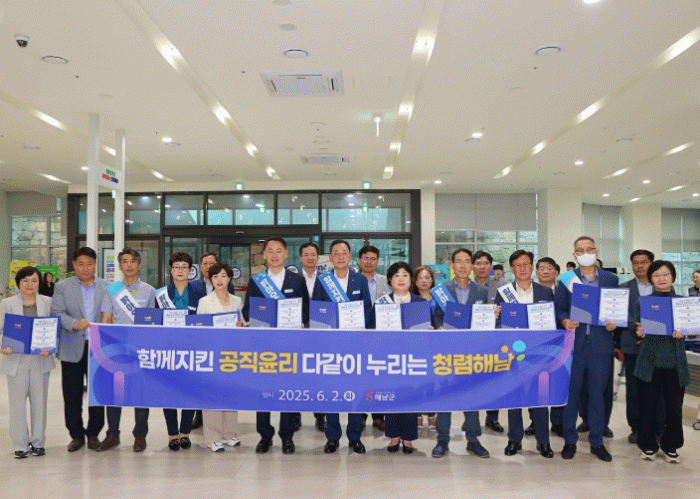 한편 해남군은 문화형 청렴교육, 청렴골든벨, 청렴주의보, 업무추진비 모니터링 강화, 청렴 서한문 및 청렴 해피콜 운영 등 다양한 청렴정책으로 더 투명한 해남군을 만드는데 박차를 가하고 있다.