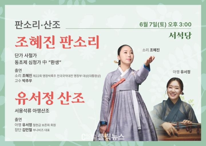 이번 공연에서는 정교한 붙임새에 동편제의 우람함이 더해져, 동초제만의 깊이와 감동을 한층 더 느낄 수 있을 것이다. 고수는 박추우 씨가 함께할 예정이다.