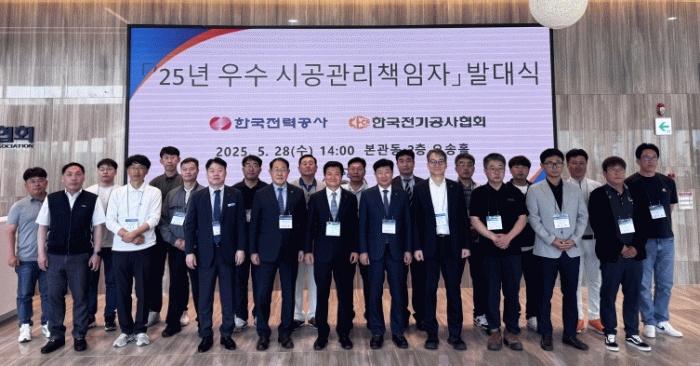 한전은 5월 28일 전기공사협회 중앙회에서 우수 시공관리책임자 발대식을 열고, 전국 6개 지역본부의 추천과 본사 심의를 거쳐 선발된 총 18명의 시공관리책임자에게 감사패와 배지를 수여했다.