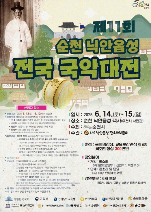 한편, 순천 낙안읍성 전국 국악대전은 순천시가 주최하고 사단법인 낙안읍성 판소리보존회가 주관하여 개최하고 있다.